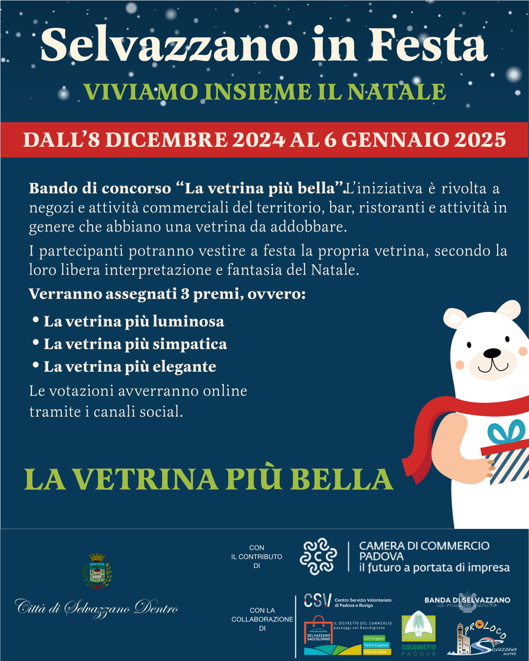 Da oggi, 20 dicembre 2024 fino al 6 gennaio 2025, sono aperte le votazioni del concorso “La vetrina più bella” del Natale 2024.