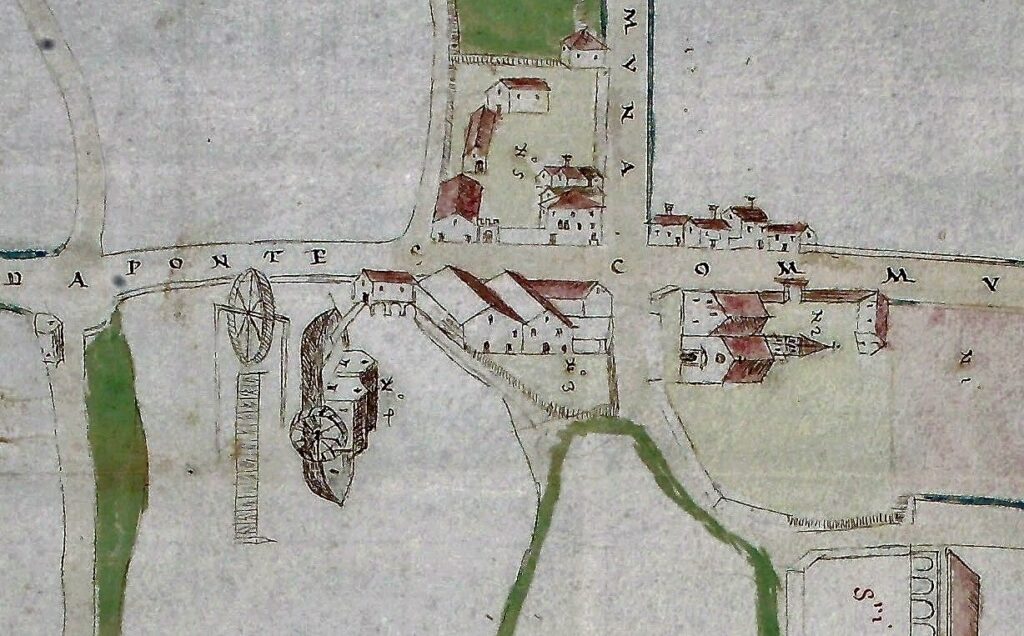 Nello spazio delle costruzioni oggi adibite a residenze e negozi – tra l’argine sinistro, via Padova e via Don Bosco – nel 1490 il nobile veneziano Giorgio Cornaro costruì una dimora signorile, con l’intento di dotarla di un’ampia estensione di terra coltivata. Nel maggio 1492 questa dimora ospitò la sorella Caterina Cornaro (1454-1510), la regina che donò il suo regno, cioè l’isola di Cipro, a Venezia nel 1489 ricevendo in cambio il feudo di Asolo. Di quel palazzo non rimane più nulla, distrutto dall’imperatore Massimiliano I° d’Austria (1459-1519) che, dopo averlo sequestrato e abitato per una settimana, nell’agosto 1509 gli diede fuoco. Svanì in questo modo il sogno di Giorgio di acquistare dal monastero di Praglia la vasta proprietà fondiaria circostante, inclusa l’area su cui aveva costruito la nuova dimora. Sul medesimo spazio furono in seguito edificati gli attuali fabbricati (profondamente manomessi dalle ristrutturazioni del secondo dopoguerra e negli anni ’60 del secolo scorso) che per secoli furono abitati dai mugnai, dai fabbri e dai carpentieri (marangoni) con le loro officine. All’alba del Novecento qui trovò sede la prima scuola elementare di Tencarola.